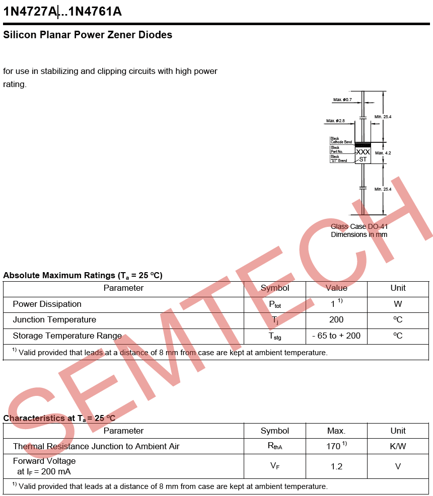 原廠先科ST插件穩壓二極管 3V~75V 1W 玻璃封裝DO-41