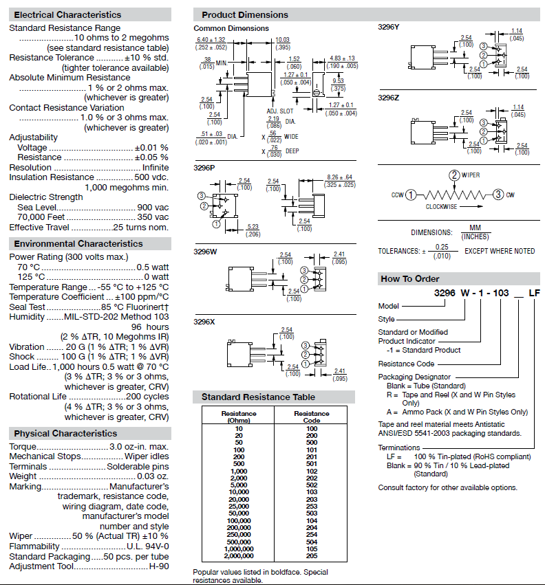 常見的3296系列可調電阻型號有3296W、3296P、3296X、3296Z、3296Y等多種.